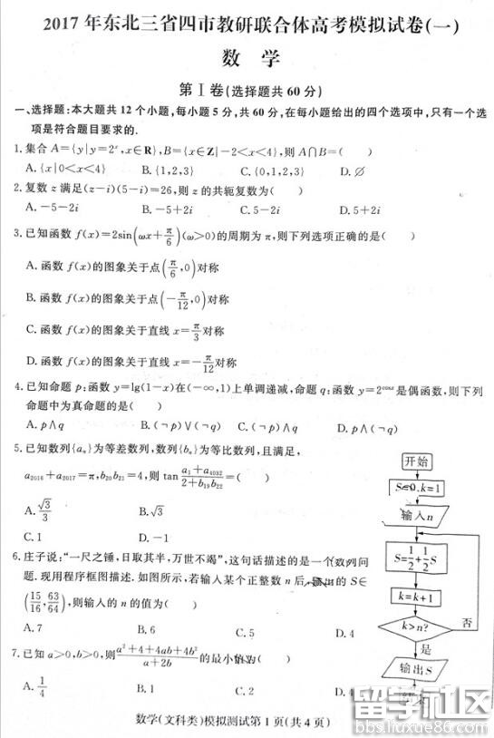 2017东北三省四市一模于3月2日-3日考试,为方便同学们查看2017东北三省四市一模试题及答案,开云官方网页版高考网小编会在考后整理发布2017东北三省四市一模文科数学试题,供同学们参考学习。更多高考一模试题及答案请点击>>>全国各省市2017高三一模(高三一诊)试题及答案汇总