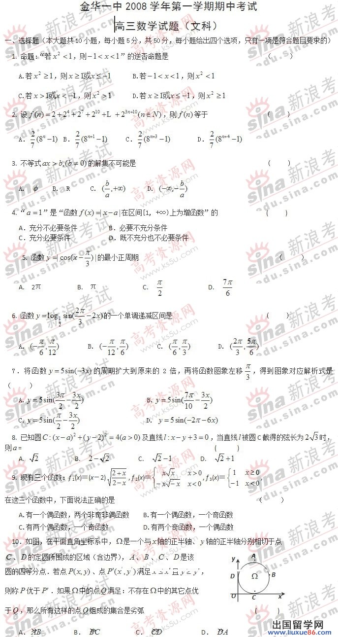 本文来源:/a/464427.html看过《浙江省金华一中08-09学年高三上学期期中考试文科数学试卷及参考答案》的人还看了以下文章