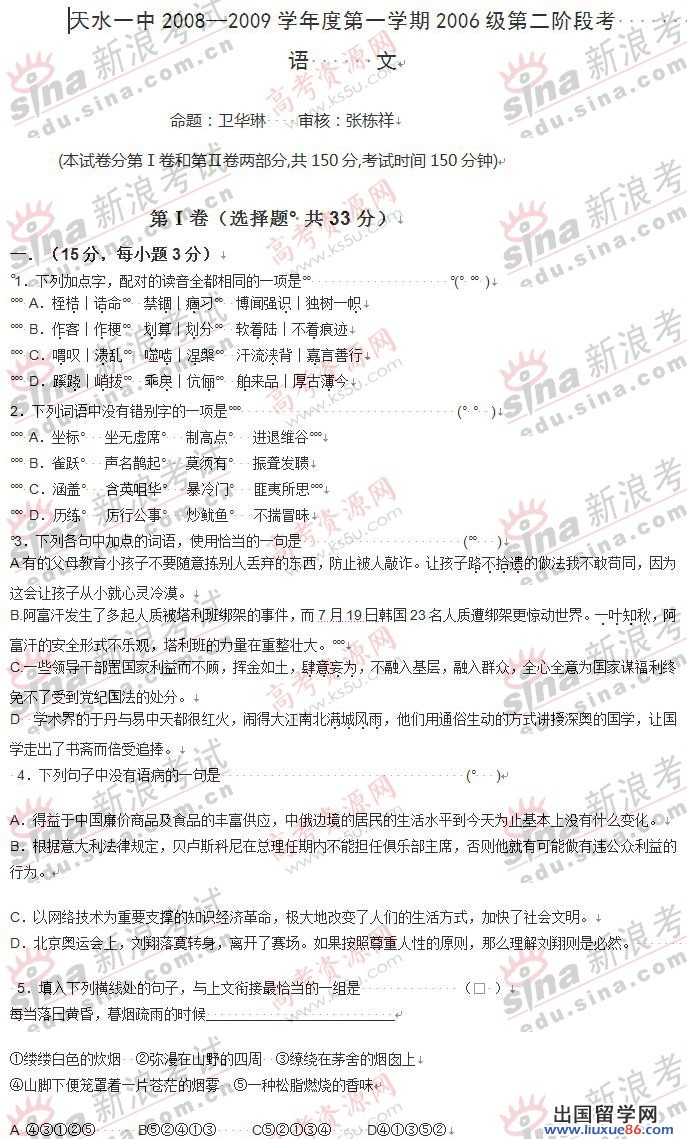 想了解更多高考语文网的资讯,请访问: 天水高考语文