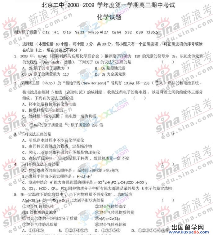 本文来源:/a/483563.html看过《北京二中2008-2009学年度第一学期高三期中考试化学试卷及参考答案》的人还看了以下文章