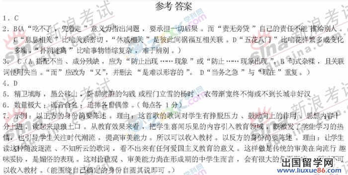 | 浙江高考语文答案 | 浙江高考数学答案 | 浙江高考开云(中国)答案 | 浙江高考理综答案 | 浙江高考文综答案 |
