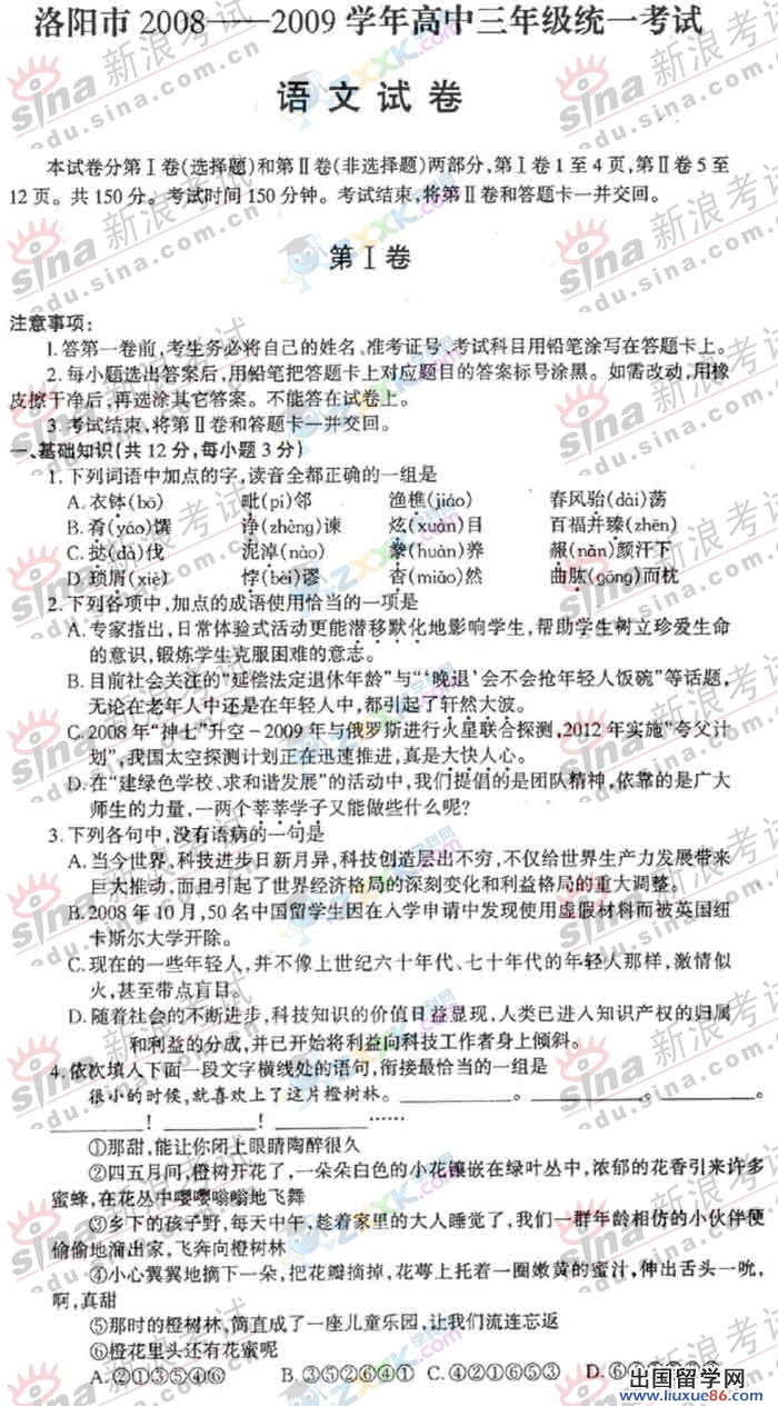 【 liuxue86.com - 高考语文 】
