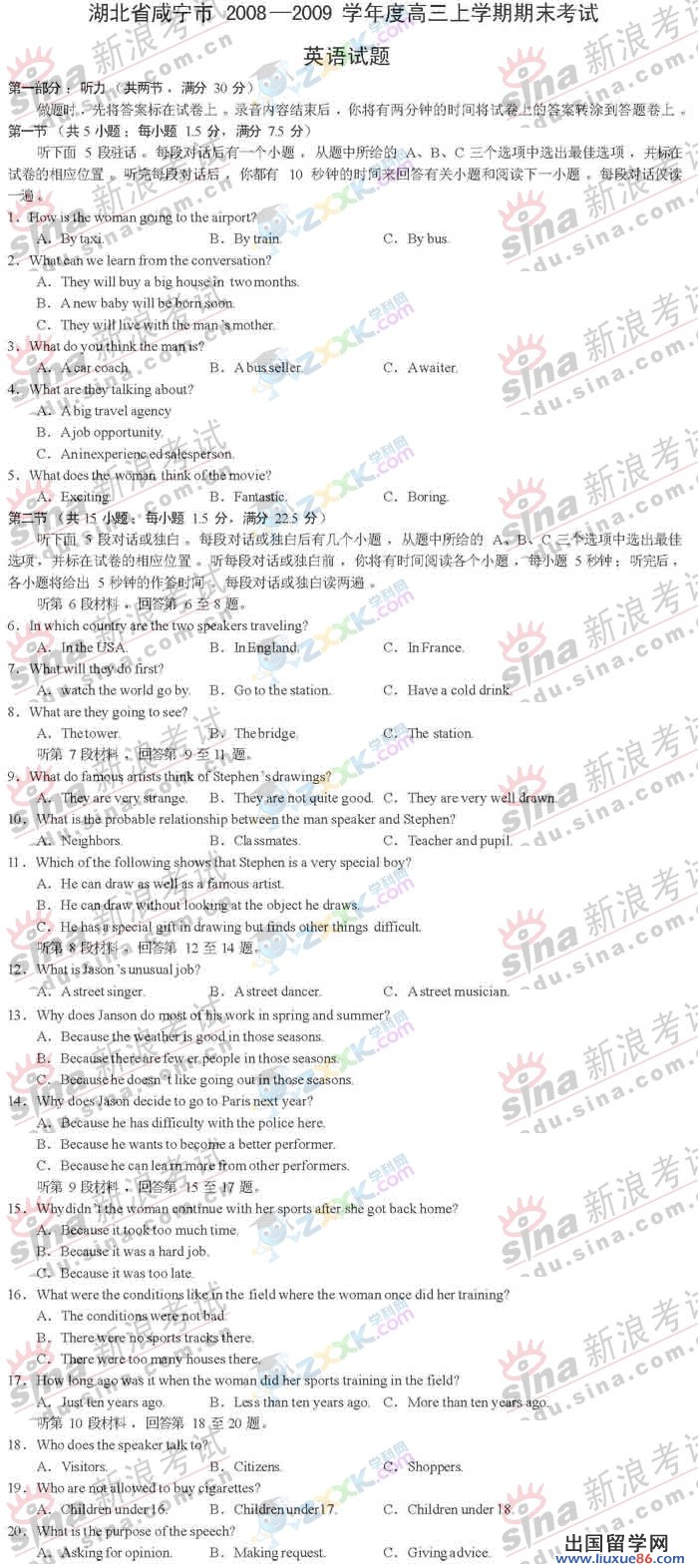 本文来源:/a/484854.html看过《湖北省咸宁市2008-2009学年度高三上学期期末考试外语试卷》的人还看了以下文章