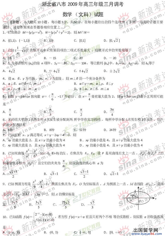 想了解更多高考数学网的资讯,请访问: 湖北高考数学