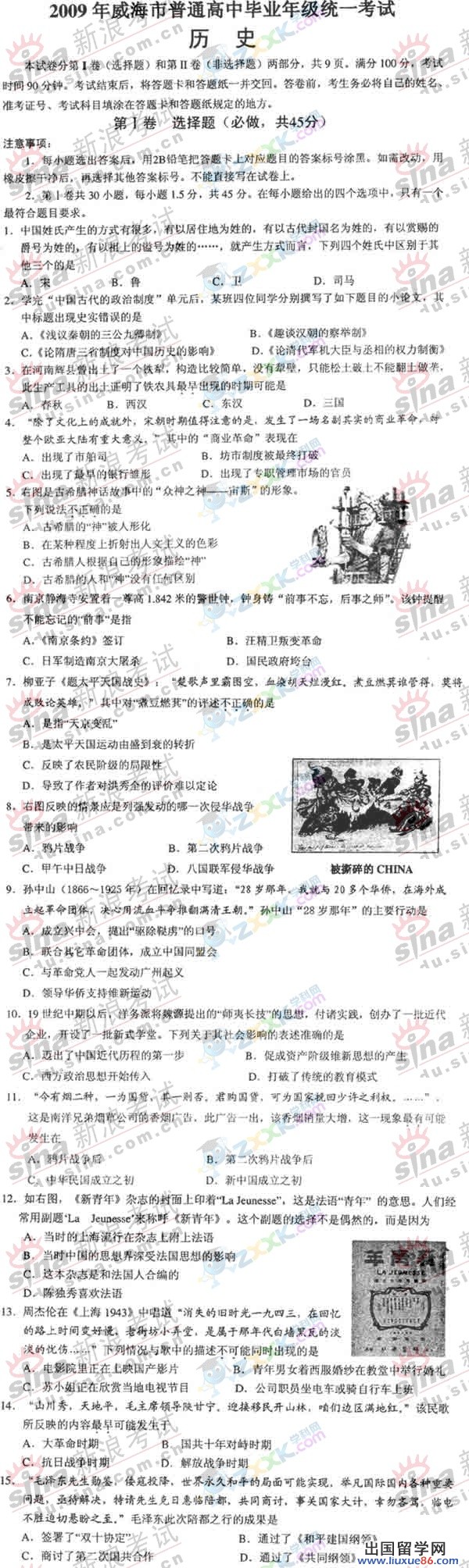 本文来源:/a/485389.html看过《2009年山东省威海市普通高中毕业年级统一考试历史试卷》的人还看了以下文章