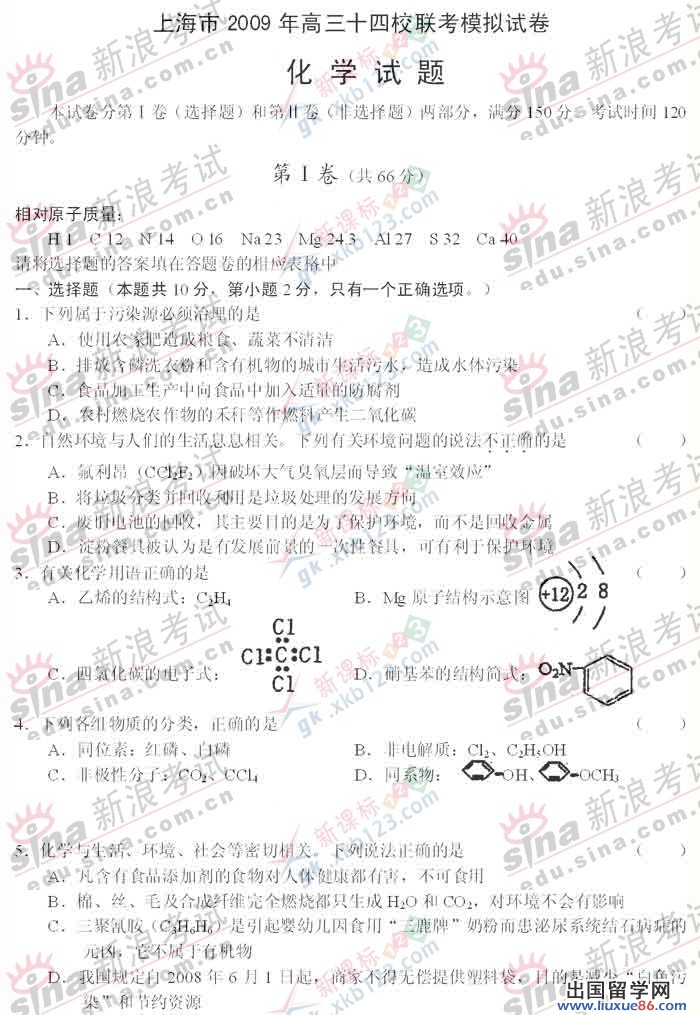 | 上海高考语文试题 | 上海高考数学试题 | 上海高考开云(中国)试题 | 上海高考理综试题 | 上海高考文综试题 |