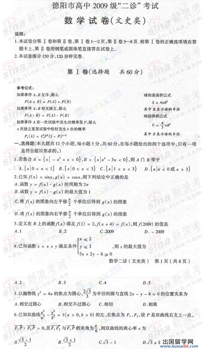 想了解更多高考数学网的资讯,请访问: 德阳高考数学