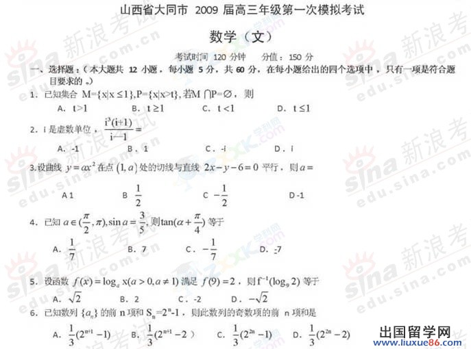 想了解更多高考数学网的资讯,请访问: 大同高考数学
