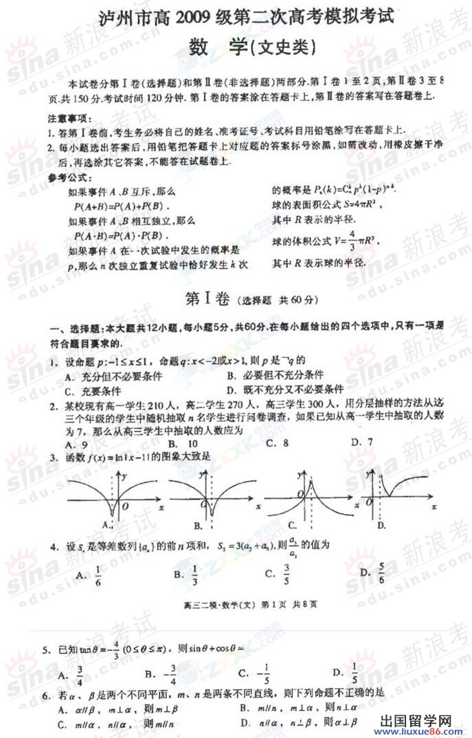 想了解更多高考数学网的资讯,请访问: 泸州高考数学