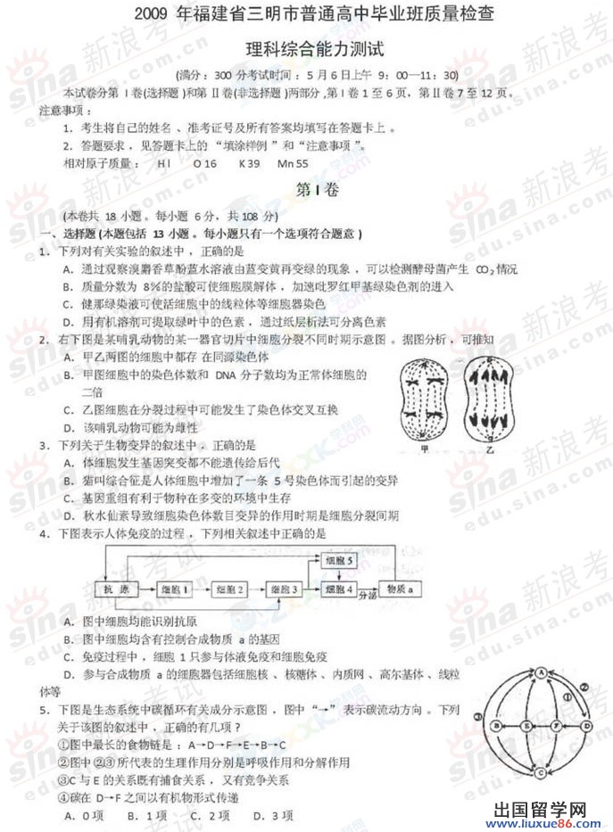 想了解更多高考理综网的资讯,请访问: 三明高考理综