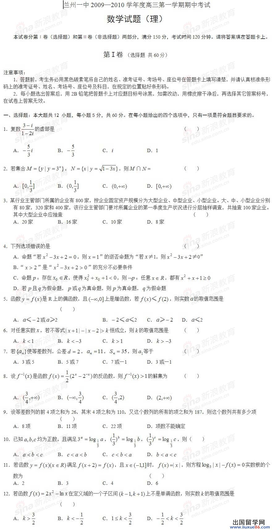 本文来源:/a/487673.html看过《兰州一中2009—2010学年度高三第一学期期中考试数学理试卷及答案》的人还看了以下文章