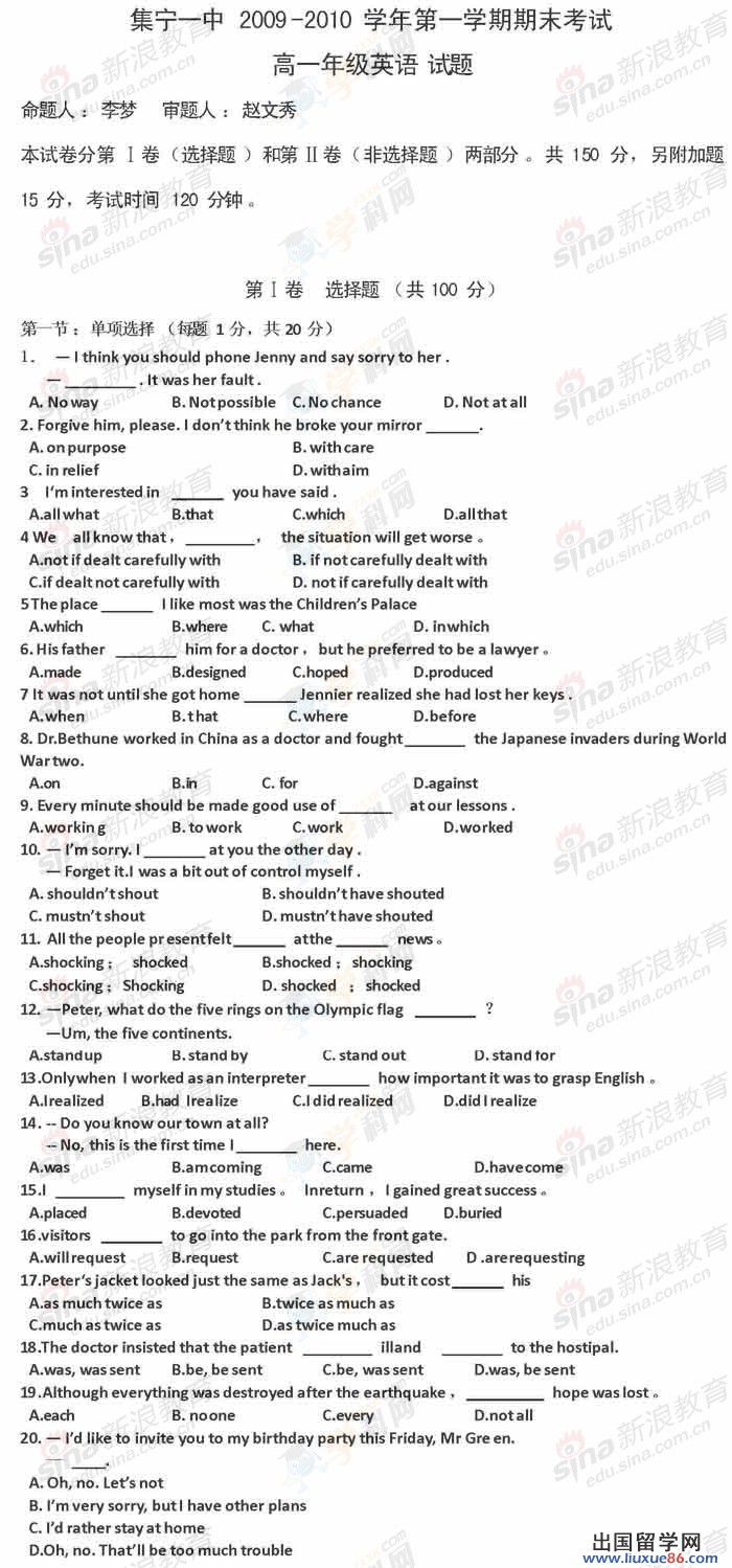 本文来源:/a/488255.html看过《集宁一中2009-2010学年第一学期期末考试高一年级开云(中国)试题》的人还看了以下文章