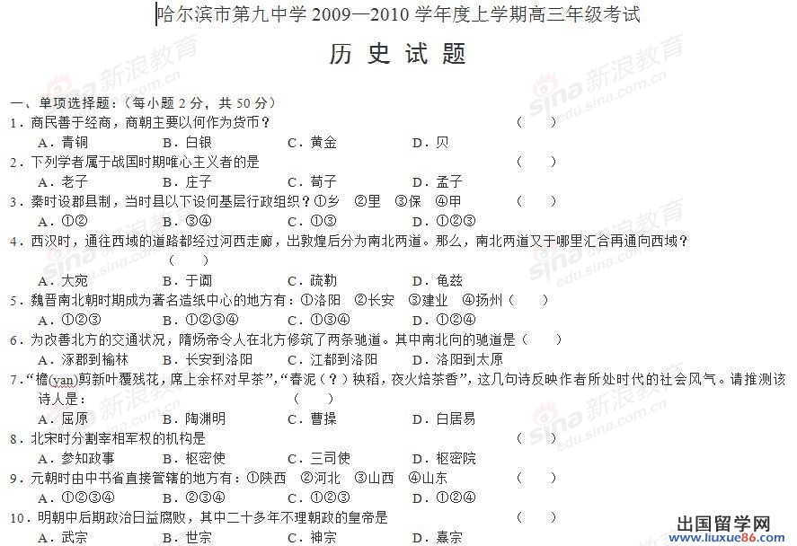 本文来源:/a/488427.html看过《哈尔滨市第九中学2009-2010学年度上学期高三年级考试历史试卷及参考答案》的人还看了以下文章