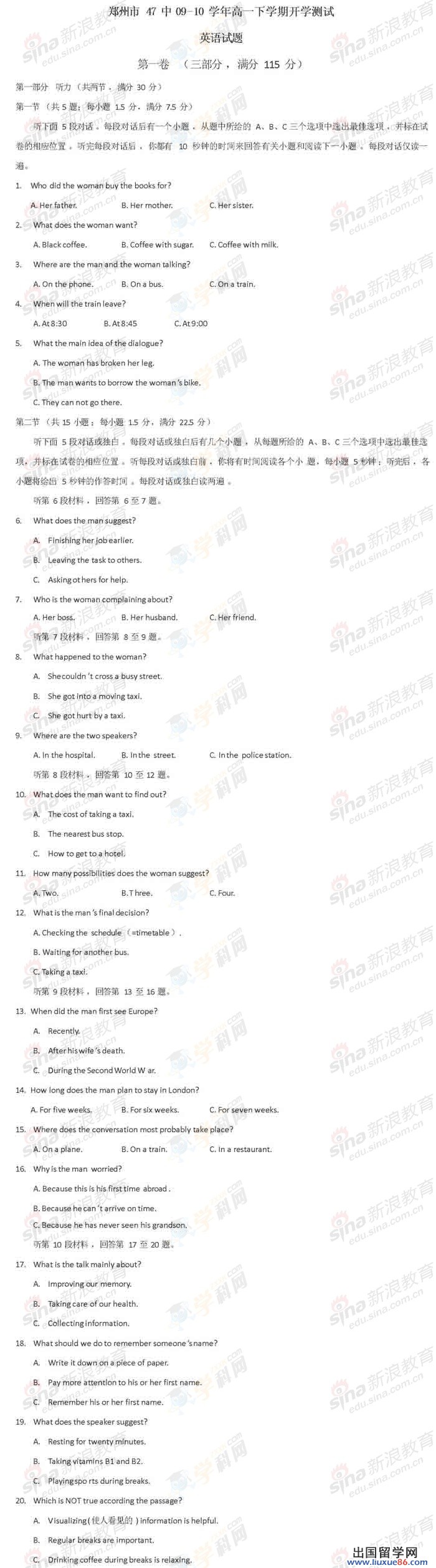 本文来源:/a/488741.html看过《河南省郑州市47中2009-2010学年高一下学期开学测试外语试卷》的人还看了以下文章