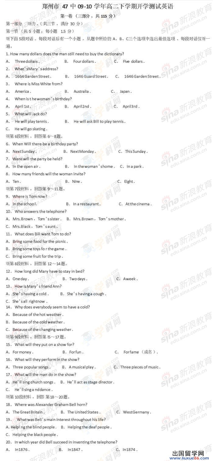 本文来源:/a/488742.html看过《河南省郑州市47中2009-2010学年高二下学期开学测试外语试卷》的人还看了以下文章