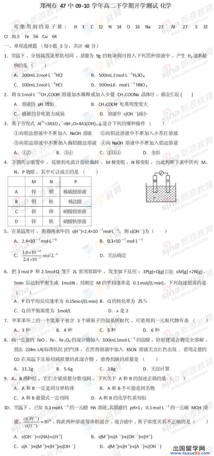 本文来源:/a/488750.html看过《河南省郑州市47中2009-2010学年高二下学期开学测试化学试卷》的人还看了以下文章