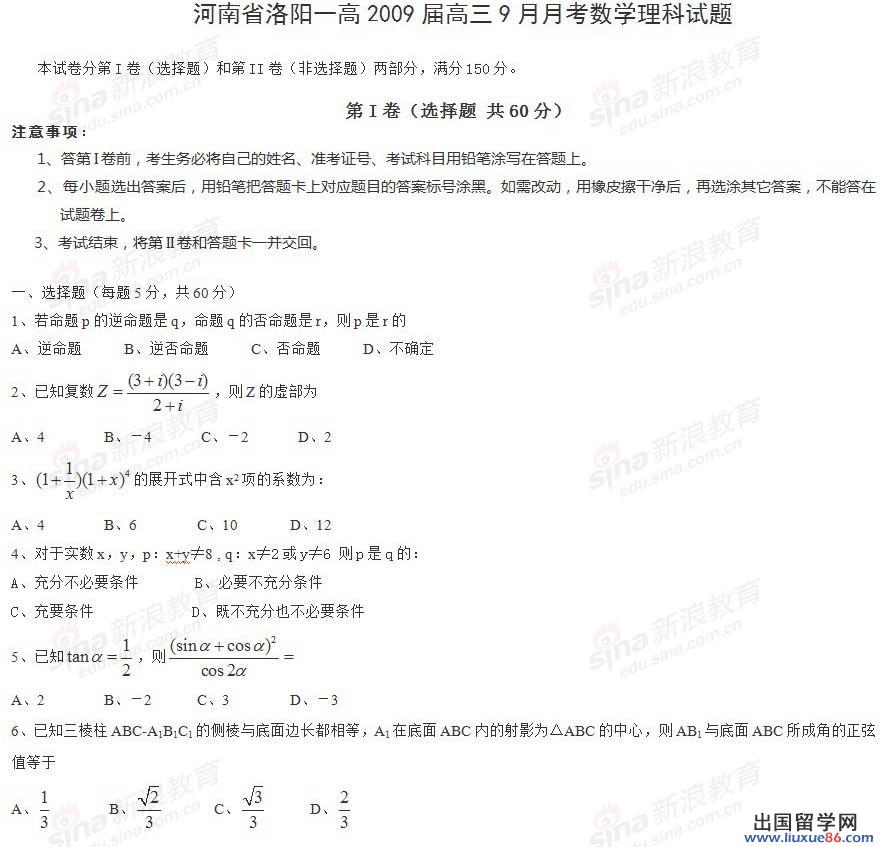 想了解更多高考数学网的资讯,请访问: 洛阳高考数学