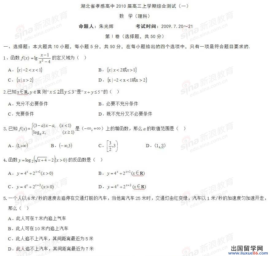 本文来源:/a/489540.html看过《湖北省孝感高中2010届高三综合测试(一)理科数学试题及参考答案》的人还看了以下文章