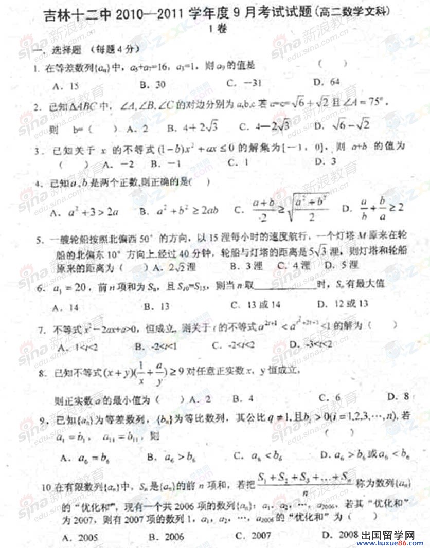 想了解更多高考数学网的资讯,请访问: 吉林市高考数学