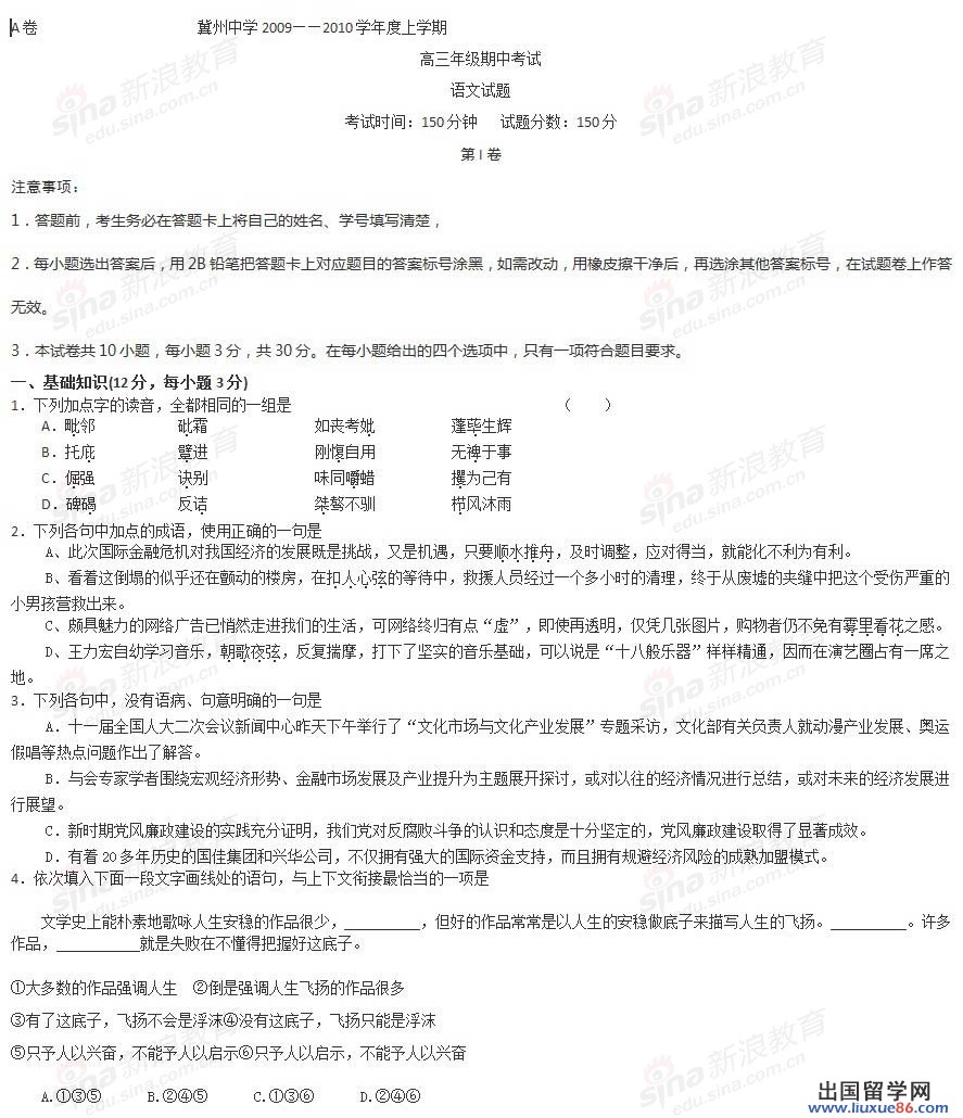 【 liuxue86.com - 高考语文 】