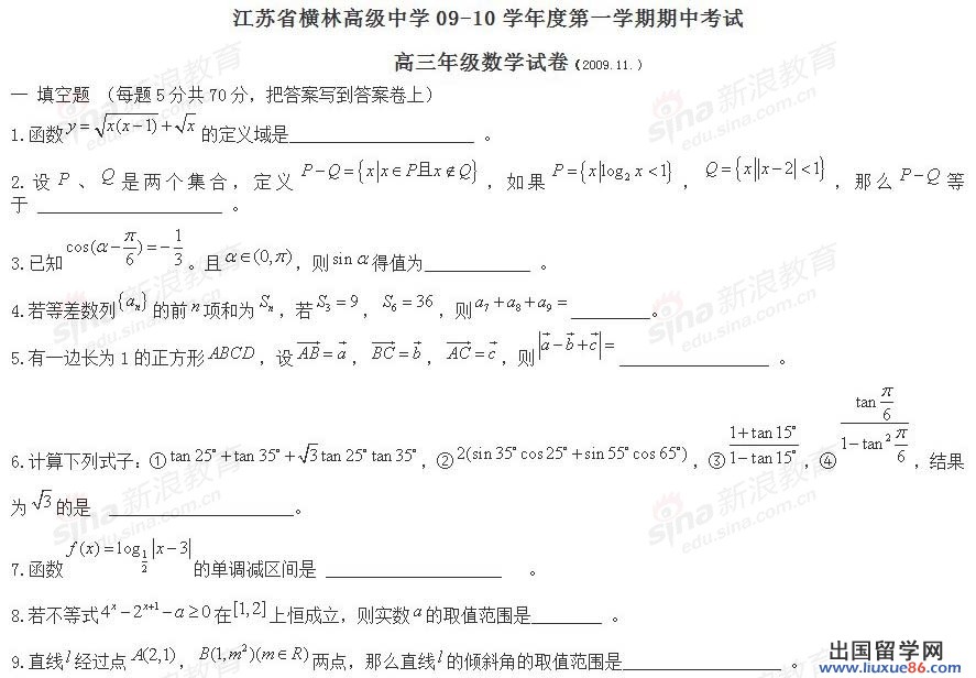本文来源:/a/490306.html看过《江苏省横林高级中学09-10学年度第一学期高三年级期中考试数学试题及参考答案》的人还看了以下文章