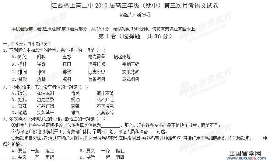 想了解更多高考语文网的资讯,请访问: 江西高考语文