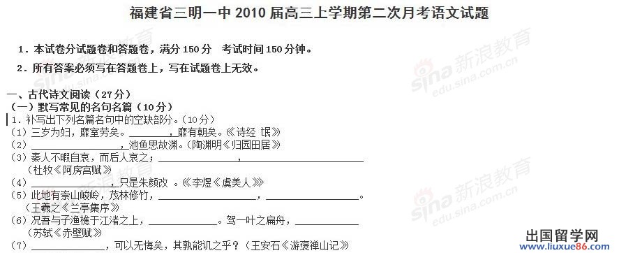 【 liuxue86.com - 高考语文 】