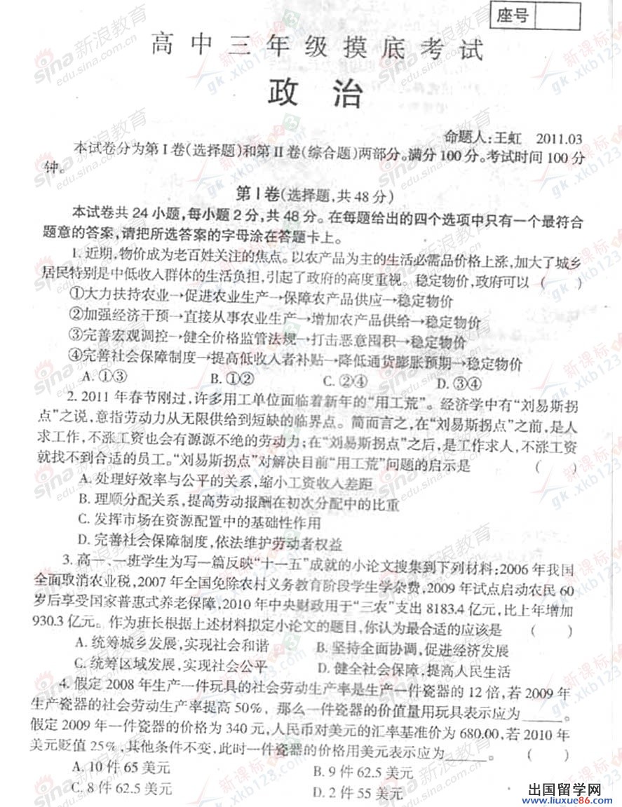 【 liuxue86.com - 高考试题 】