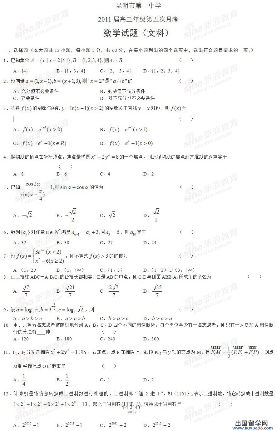 本文来源:/a/491331.html看过《云南省昆明一中2011届高三第五次月考文科数学试卷及参考答案》的人还看了以下文章