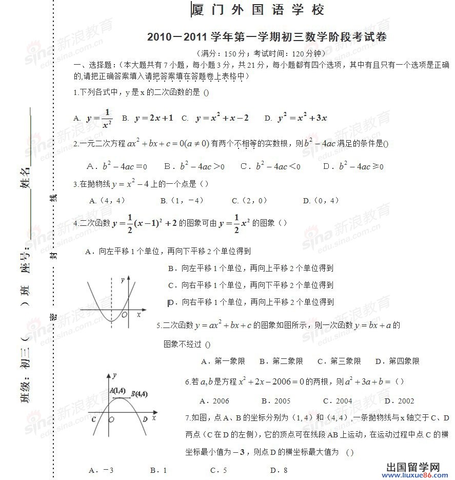 本文来源:/a/491399.html看过《福建省厦门外国语学校2010-2011学年九年级第一学期期中考试数学试题及参考答案》的人还看了以下文章