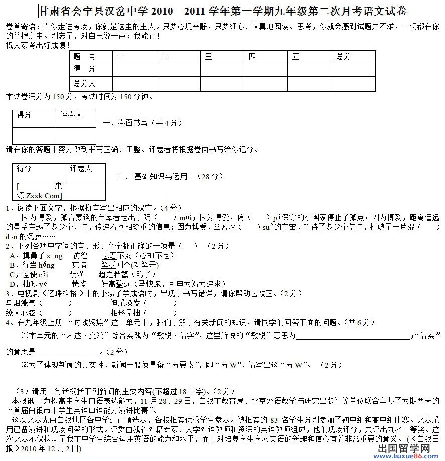 【 liuxue86.com - 高考语文 】