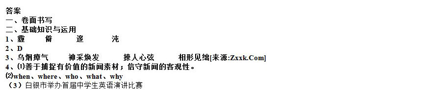 本文来源:/a/491717.html看过《甘肃省会宁县汉岔中学2010-2011学年九年级第一学期第二次月考语文试卷及参考答案》的人还看了以下文章