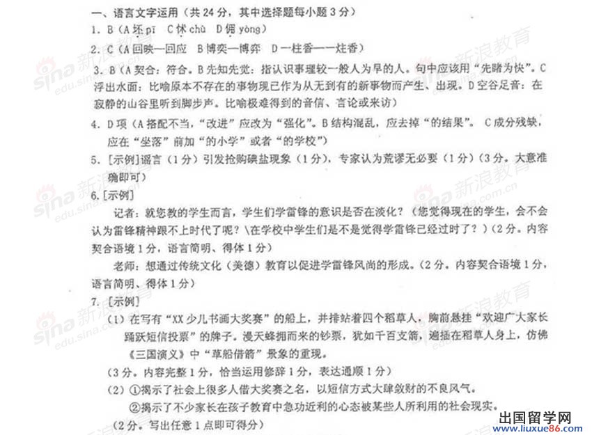 | 浙江高考语文答案 | 浙江高考数学答案 | 浙江高考开云(中国)答案 | 浙江高考理综答案 | 浙江高考文综答案 |