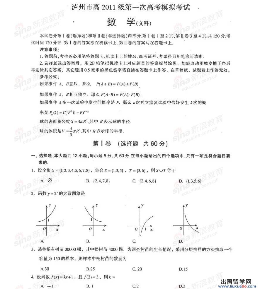 想了解更多高考数学网的资讯,请访问: 泸州高考数学