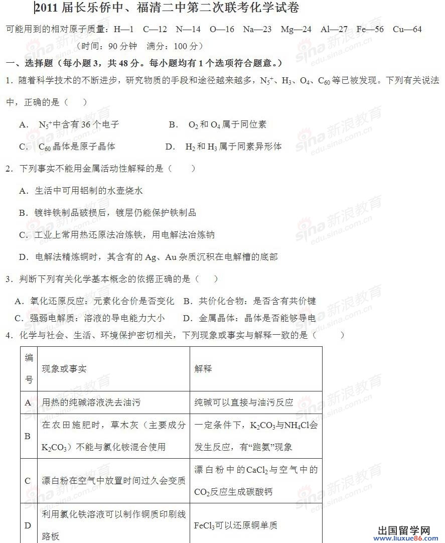| 福建高考语文试题 | 福建高考数学试题 | 福建高考开云(中国)试题 | 福建高考理综试题 | 福建高考文综试题 |