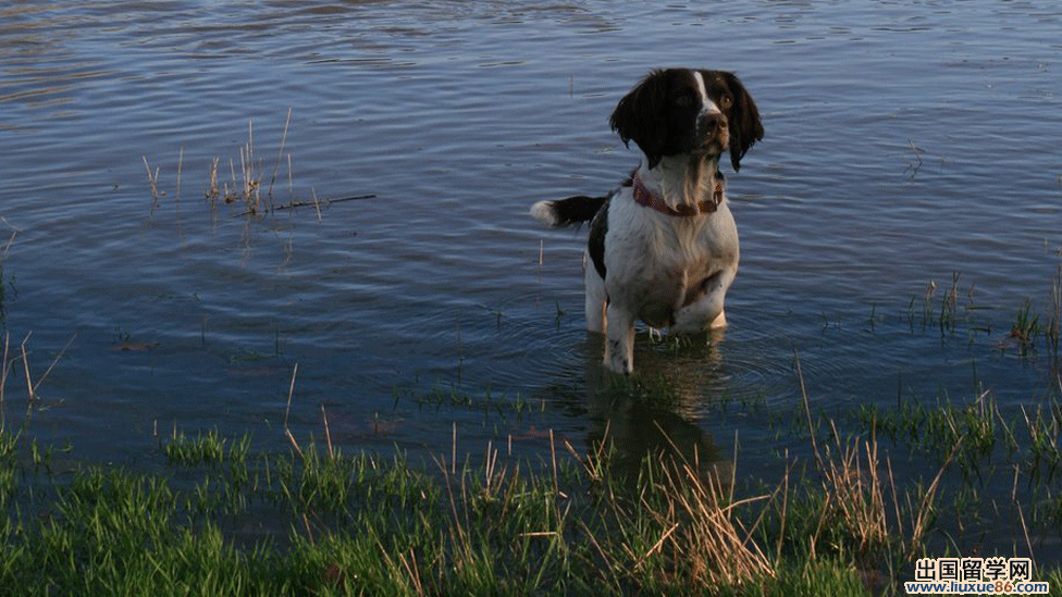 洪水虽然恼人,但是狗儿似乎并不介意。