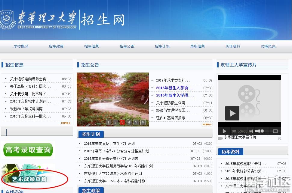 东华理工大学2017艺考成绩查询系统:http://zsb.ecut.edu.cn/