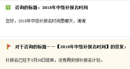 问:您好,2018年中级补报名时间是哪天,谢谢