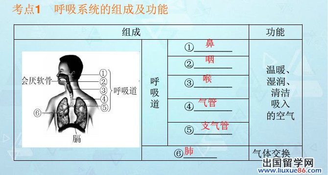 同学们复习《呼吸系统的组成及功能》时要注意重难点:【导学重点】 呼吸系统的组成。【导学难点】 肺的结构和功能。更多有关2014中考生物的信息可登录开云官方网页版生物频道,欢迎收藏本站(CTRL+D即可收藏)!