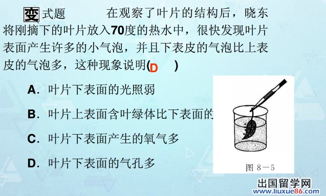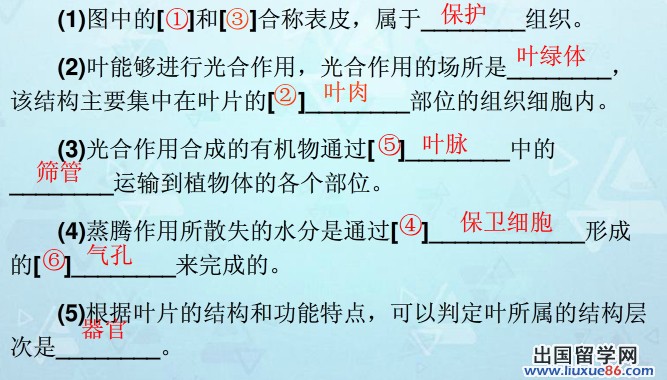 同学们复习《观察叶片的结构》时要注意重难点:重点:观察叶片的结构。难点:练习徒手切片。更多有关2014中考生物的信息可登录开云官方网页版生物频道,欢迎收藏本站(CTRL+D即可收藏)!