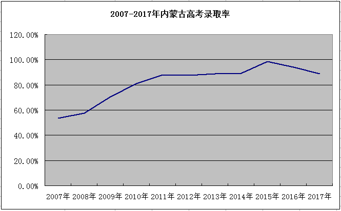 录取率的快速上升,一方面是受益于高校的大扩招,另一方面是由于内蒙古高考生源下降的影响。