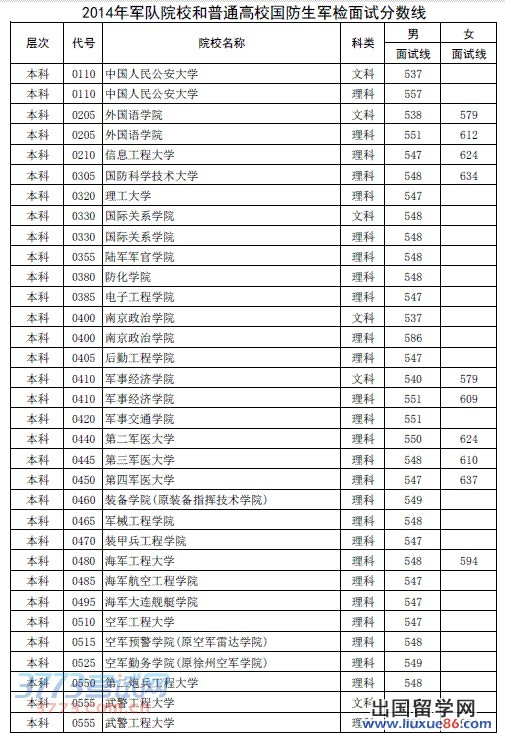 开云官方网页版高考频道讯 贵州省2014年高考军队、国防生、公安类院校招生面试体检分数线划定