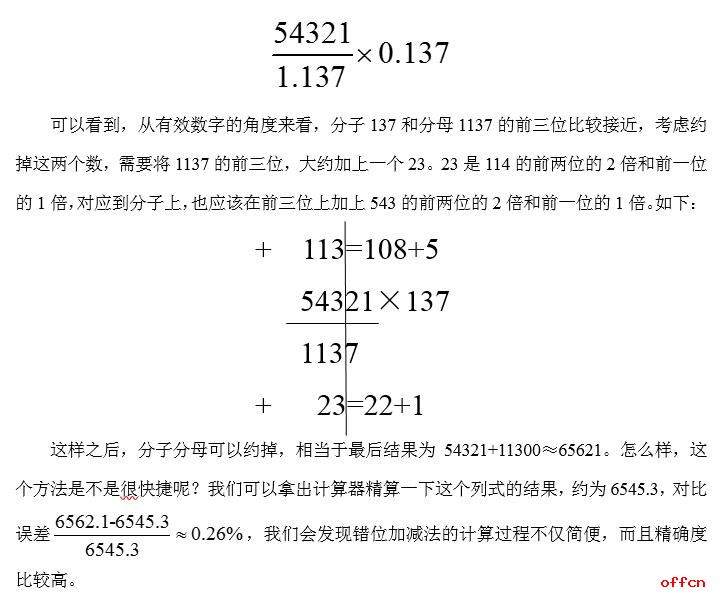 在公务员考试行测资料分析中往往会出现大数据的计算,而且往往是涉及到多个数的乘除运算,那么快速准确的乘除运算技巧就是必备的。今天就给各位考生介绍一种能够较准确计算多个数字乘除运算的方法—错位加减法。