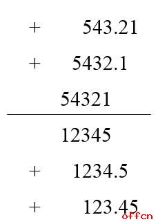 而在实际计算中,我们经常取前三位的有效数字进行计算,那这么去观察的话,我们会发现,分母12345,加上12相当于分子的54321加上54,即分母加前两位分子也加前两位,而分母12345加上1相当于分子的54321加上5,即分母加前一位分子也加前一位。如下图: