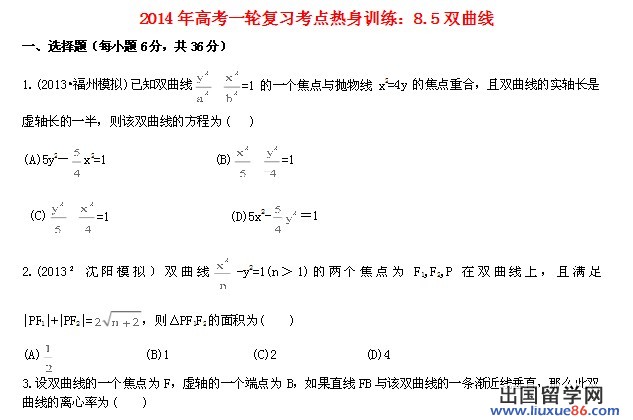 双曲线也常用来做为压轴题,高考数学频道为大家提供高考数学压轴题及答案:双曲线,更多高考资讯请关注我们网站的更新!