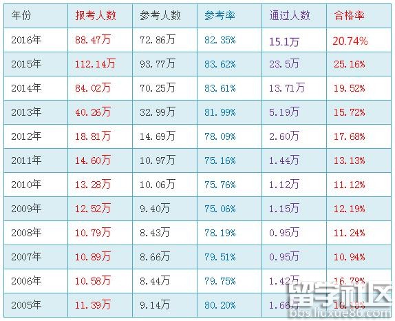 | 考区 | 报考人数 | 实考人数 | 参考率 | 合格人数 | 合格率 |