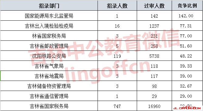 报名通过审核人数前十的职位主要集中在沈阳铁路公安局、吉林国家税务局、吉林出开云官方网页版境检疫检验局等部门,具体信息如下: