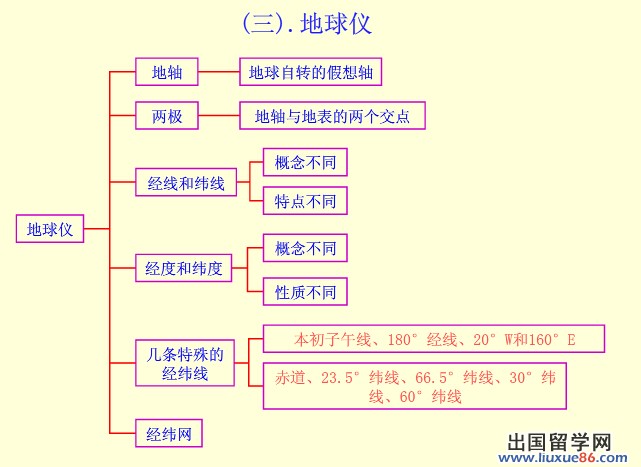 中考地理《地球与地图》知识点:地球仪上的点和线的名称