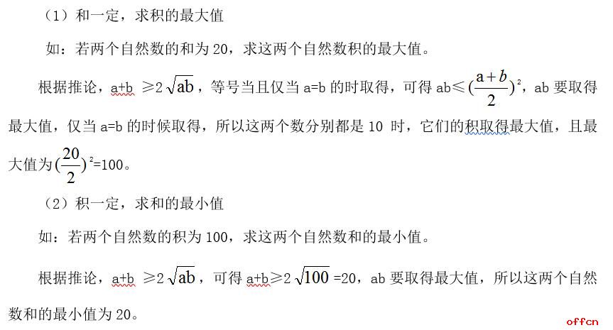 由上述推论可知,当正实数a、b的和为定值时,a与b的乘积可取到最大值,当且仅当a=b时取到。