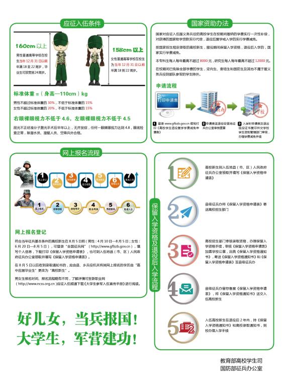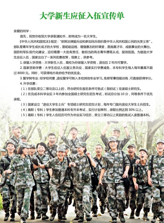 出国留学高考网为大家提供2017大学新生征兵优惠政策,更多高考资讯请关注我们网站的更新!